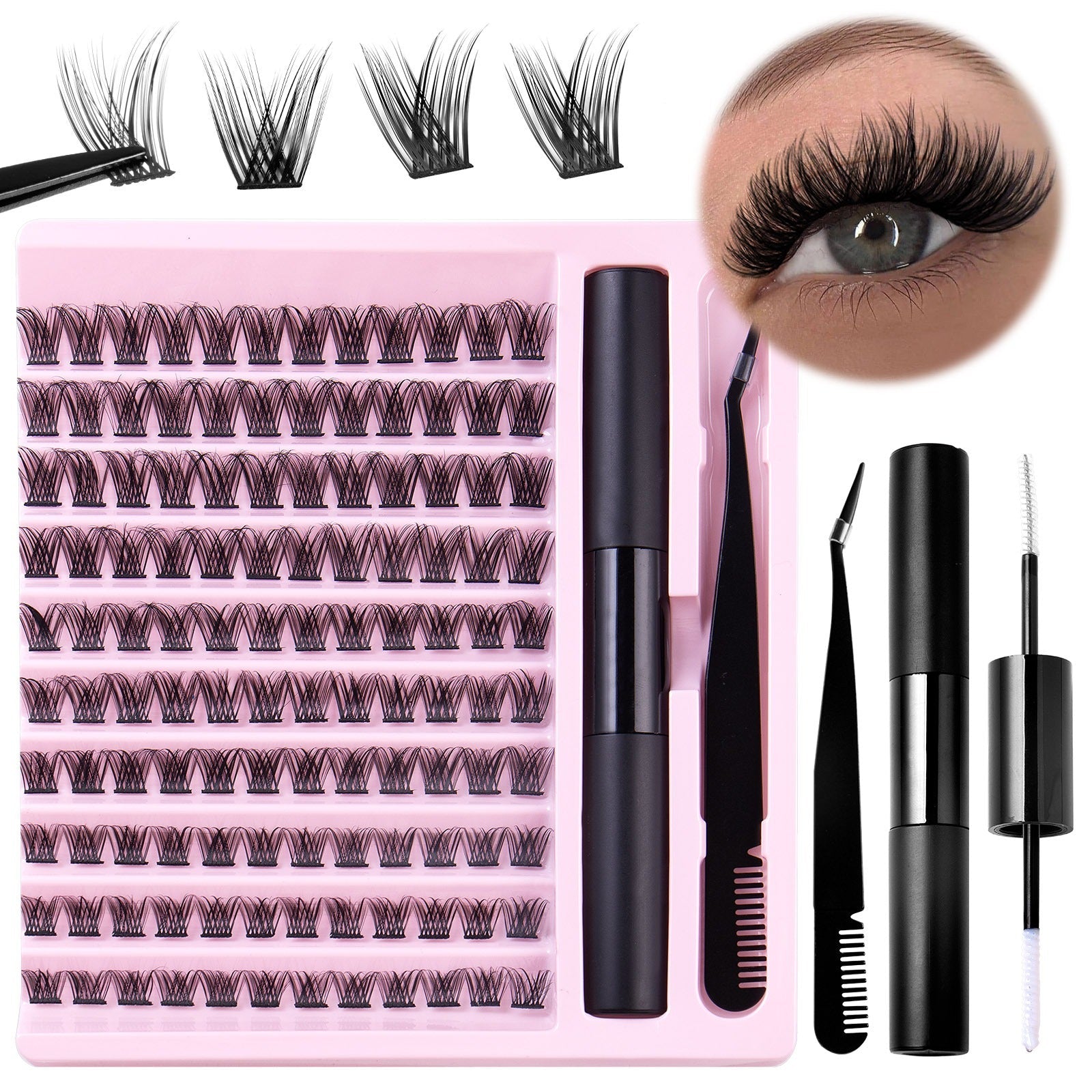 Eyelash DIY Eyelash Extensions Kit Private Label Lash Clusters DIY with Bond Seal Glue and Tweezers Set